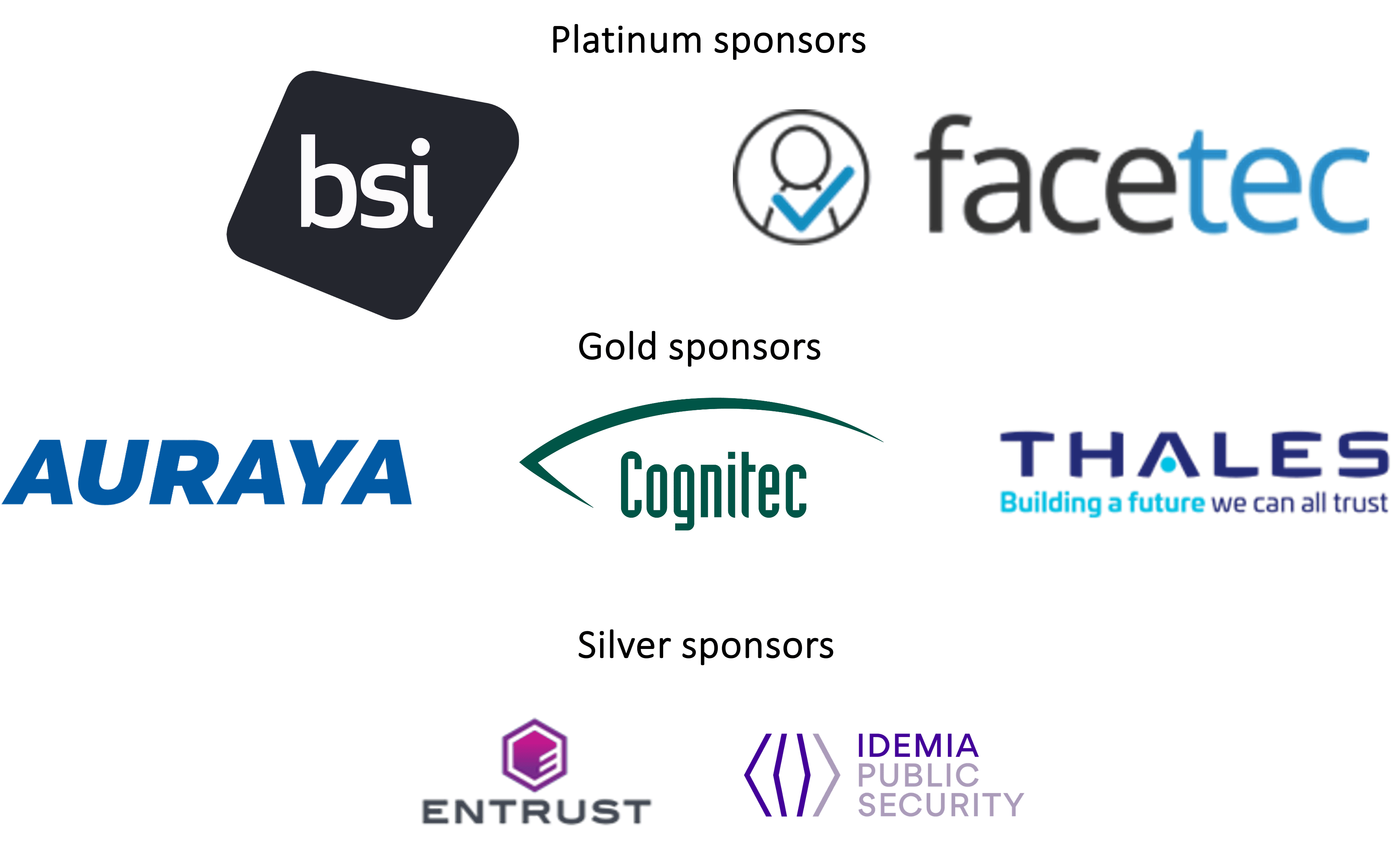 With thanks to our 2024 platinum sponsors, British Standards Institution – BSI, FaceTec, our gold sponsors Auraya, Cognitec and Thales and our silver sponsors Entrust and IDEMIA .