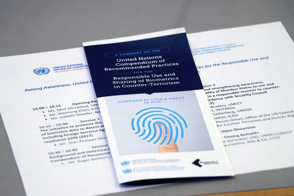 The Biometrics Institute has been working with the United Nations Counter-Terrorism Committee Executive Directorate (CTED) and the Office of Counter-Terrorism (OCT) since 2017, sharing its expertise on biometrics in counter-terrorism. We were asked to help compile the UN’s Compendium of Recommended Practices for the Responsible Use & Sharing of Biometrics in Counter-Terrorism, which was launched in June 2018.