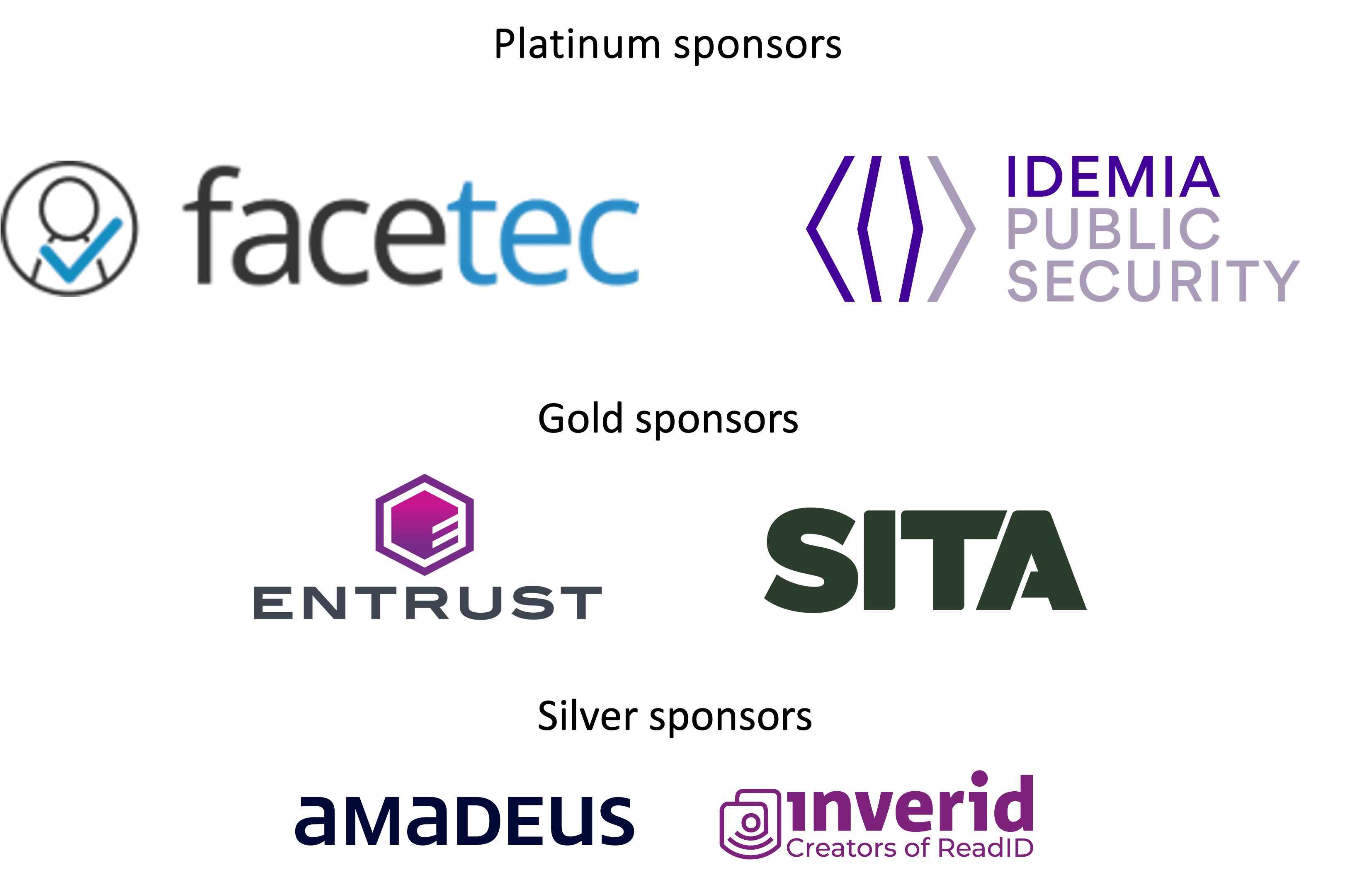 With thanks to our platinum sponsors FaceTec and IDEMIA, our gold sponsors Entrust and SITA, and our silver sponsors Amadeus and Inverid.